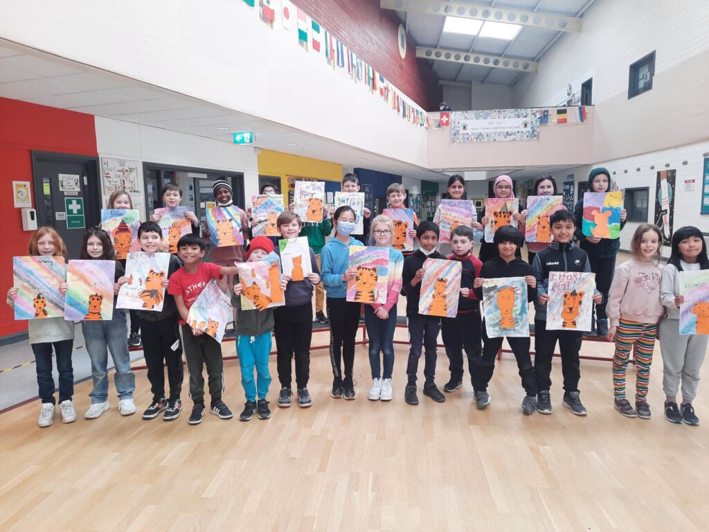 Anne-Marie’s 3rd class led assembly in February. Here is a picture of us with our artwork.