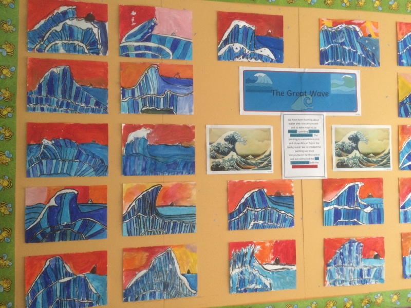Karen’s 2nd class were inspired by Hokusai’s ‘The Great Wave off Kanagawa’. We re-created this piece of art work and explored warm colours and cool colours and perspective. We really enjoyed creating these, take a look at them below.