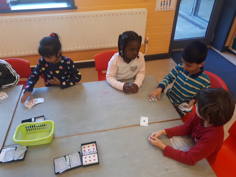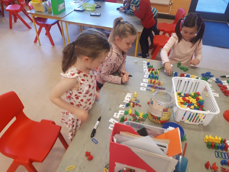 Shauna’s class have been working on matching and sorting objects. The children worked independently to make non-equivalent sets of objects up to 10. The also played snap in pairs and practised number formation.